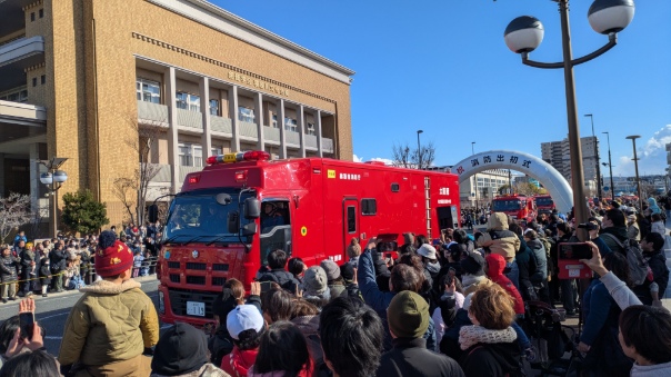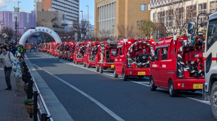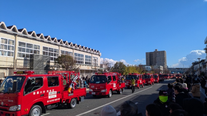 少し前ですが、1月11日に、寝屋川の大通りで枚方寝屋川消防の出初式が行われ、仕事前に少しだけ見学に行ってきました。 消防車は約50台ほどで、消防士の他、各地域の消防団もパレードに参加していて、本当にものすごい規模の出初式でした。 来年もあるのかな・・・??